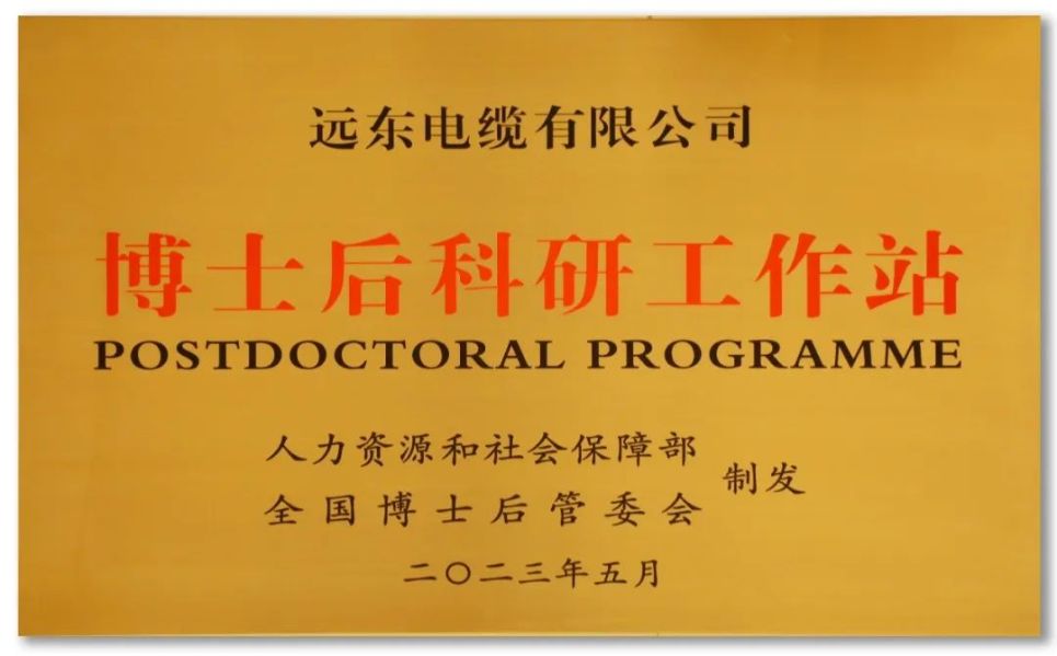 在國(guó)家各級(jí)博士后工作管理部門的大力支持和公司的高度重視下,遠(yuǎn)東電纜“博士后科研工作站”于2023年5月經(jīng)國(guó)家人事部、全國(guó)博士后管委會(huì)批準(zhǔn)設(shè)立,并于5月24日在“2023太湖人才峰會(huì)”開(kāi)幕式上接受授牌。