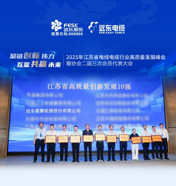遠東智慧能源股份有限公司(簡稱:遠東股份 股票代碼:600869)憑借卓越的產品品質、強大的創新力以及持續的市場競爭優勢,成功入選“2024年度江蘇線纜產業高質量創新發展企業10強”。